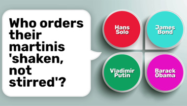 Look forward to questions like "Jumping from a height whilst attached to an elasticated chord is called what?" and "Who orders their martinis 'shaken, not stirred'?"