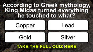 In this fun trivia quiz we're going to ask questions like "Carrying someone against their will is an?" and "According to Greek mythology, King Midas turned everything he touched to what?".