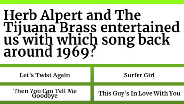 In this fun 1960s Songs quiz we're going to ask questions like "Herb Alpert and The Tijuana Brass entertained us with which song back around 1969?" and "Sgt. Barry Sadler entertained us with which song back around 1967?".